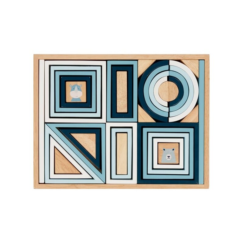 Diese Bausteine verbinden klassisches Holzspielzeug mit modernem Design. In sanften Azur-Tönen gehalten, laden sie zum kreativen Bauen ein und setzen gleichzeitig einen stilvollen Akzent im Kinderzimmer.