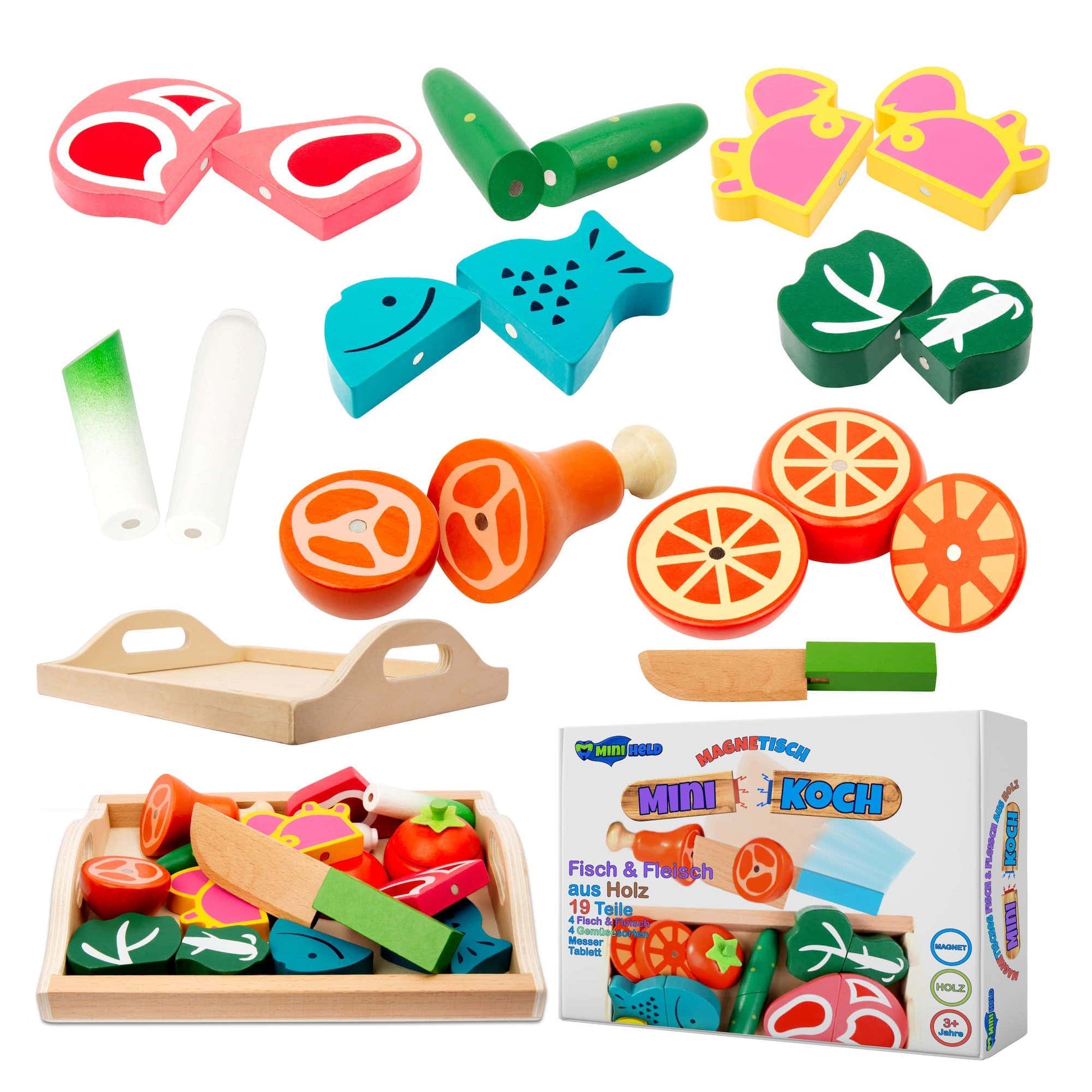 miniHeld Kinderküche Zubehör Spielküche Fleisch Fisch Gemüse Schneiden ausHolz